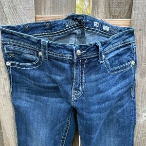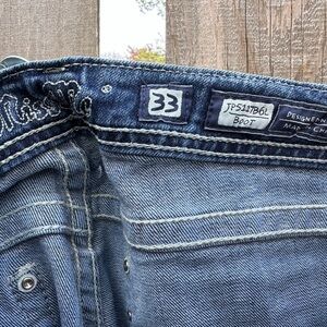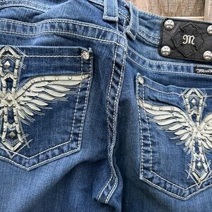 MISS ME jeans styled with two angel cross on both of the back pockets. Good condition.