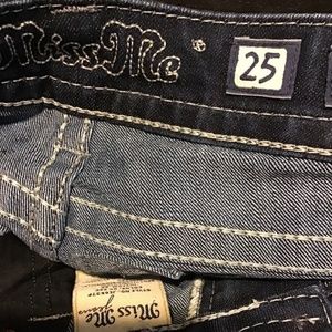 I bought these but they’ve never fit me since I’m just too short. They’re roughly 32”ish inseam, lower mid rise, super cute and I love how dark they are! Pretty much frozen in time being brand new and me never getting to wear them.