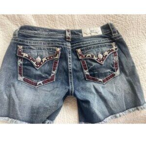 MISS ME*EMBELLISHED*LOW RISE*SIGNATURE SHORTS*TAG 31 MEASURED WAIST IS A 32"
