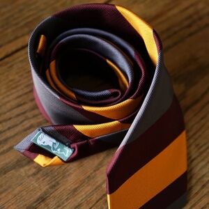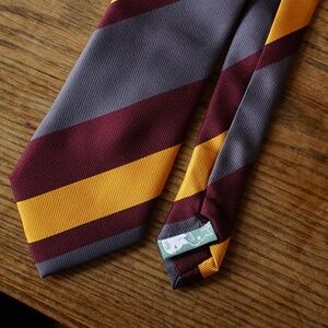 If you're looking for a way to add personality to your outfit, this Harry Potter-themed MISS PATINA Hogwarts Gold and Red stripped tie is it! A simple, yet statement accessory perfect for year-round styling. Yes, this tie is machine washable!