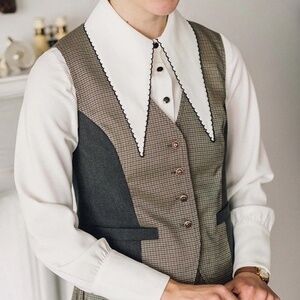 This waistcoat/vest is a part of a co-ord set (please see other "Marley" listing in my closet for matching skirt)! This gorgeous tailored piece adds beautiful depth and is perfect for layering under a peacoat or blazer for a touch of class and English flair!