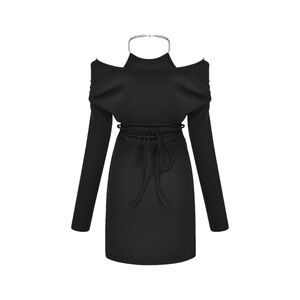 MISS ROSIER Black Backless Next Level Off Shoulder Waist Cut Out Dress NWT Small