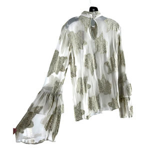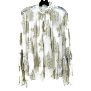 MISS SELFRIDGE SHEER RUFFLE BLOUSE WITH GOLD FLORAL EMBELLISHMENT