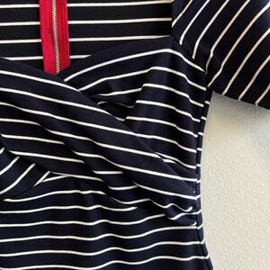 MISS SIXTY Navy White Striped Stretch A-line Midi Dress Women’s Size 4