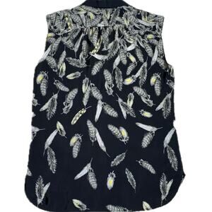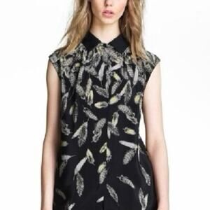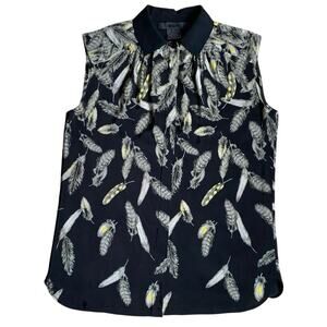 MISS WU Jason Wu Bella Silk Button Up Sleeveless Blouse SZ 4 Black Feather Print