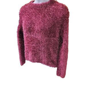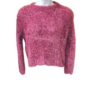 MISSβB Women's Magenta Fuzzy Shimmer Long Sleeve Cropped Sweater SIZE S/M
