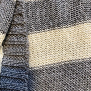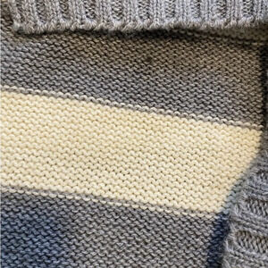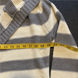 MISSES RUE 21 GRAY AND WHITE LONG SLEEVE CARDIGAN SIZE MEDIUM Nice condition two minor flaws see photos