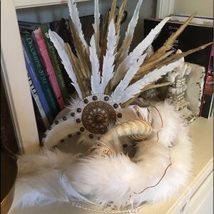 Miss G Designs www.missGdesigns.com Please check out this artist’s work at http://missgdesigns.com/. It is very expensive to order her hand crafted head pieces and there is a long wait.