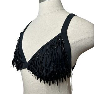 MISSGUIDED Black Beaded Triangle Swim Bikini Top size 10
