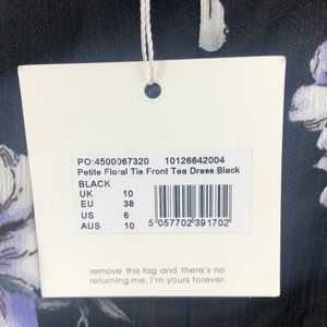 MISSGUIDED Black Button Tie Back Tea Dress 6