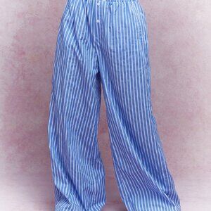 Style: Buttoned, wide leg, striped, pajama-inspired trousers