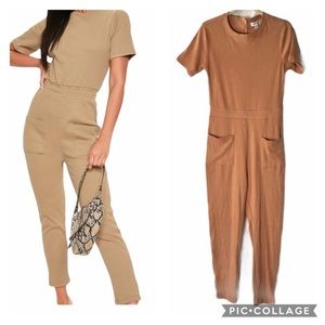MISSGUIDED camel ribbed ankle jumpsuit 10