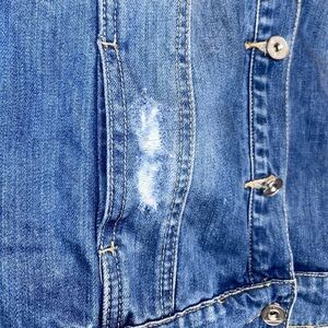 MISSGUIDED Graphic Ripped Denim Jacket Blue Size 6
