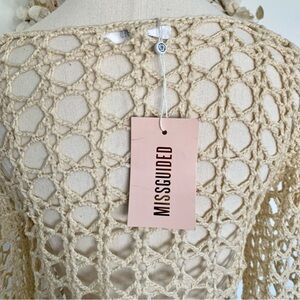 MISSGUIDED Hexagon Stitch Cropped Crochet Sweater in Natural Beige