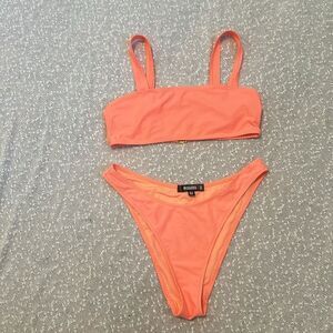 MISSGUIDED High Leg Waisted Coral Orange Bikini 6 8