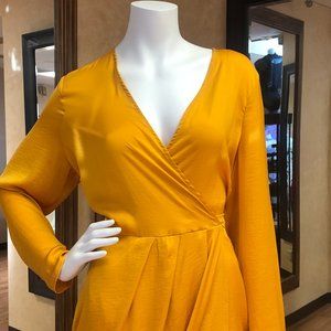MISSGUIDED MUSTARD RUCHED SIDE DRESS NWT