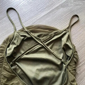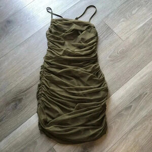 MISSGUIDED Mesh Ruched Dress Open Back Dress Dark Green Size 10
