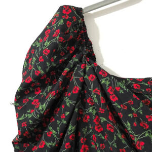 MISSGUIDED Red Black Poppy Floral Printed Mini Coquette Dress, Gigot Sleeves, 2
