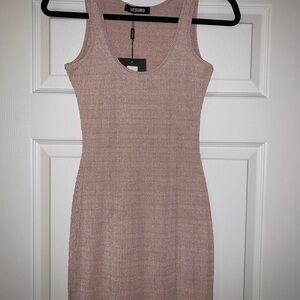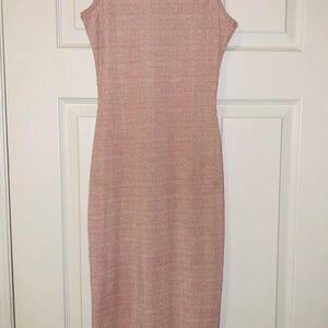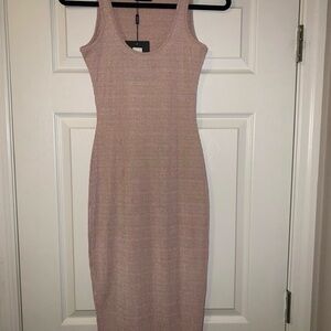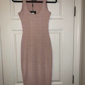 New MissGuided ribbed midi dress in shiny rose pink sleeveless size S