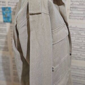 Super comfy and designed for oversized fit, Carli Bybel x Missguided Collab line tan khaki utility cargo jacket with super large front 4 flap snap buttons pockets. Marked size small but would fit Medium best due to super oversized fit. Chest measures about 22" (56 cm) wide, and 29" (74 cm) long. For reference, normal XL measures about 21". Never worn but new, it's too heavy for me in California!