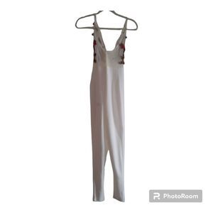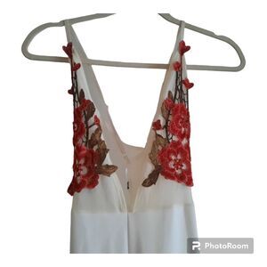 MISSGUIDED White Strappy Embroidered Mesh Plunge Jumpsuit