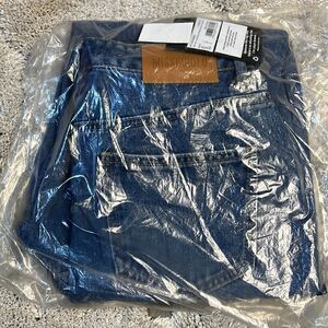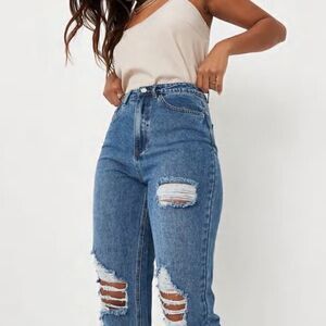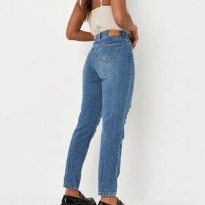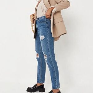 MISSGUIDED - blue mid wash riot roll hem knee rip mom jeans