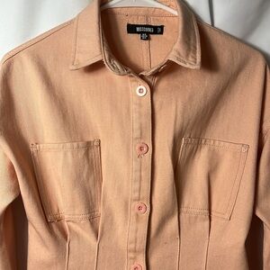 MISSGUIDED cotton long sleeve button down pockets pleated shacket Sz 4 Coral