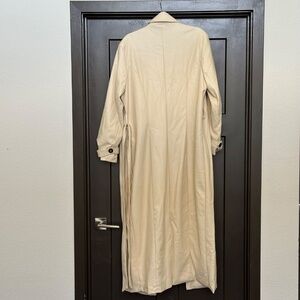 Description: New with tags long faux leather trench coat from Missguided. A few unidentifiable markings on the collar, left sleeve, and left front - see photos. Priced accordingly.