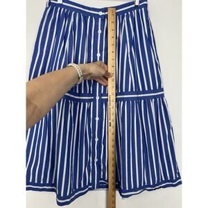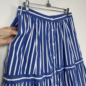 MISSING BELT - J. CREW Womens Size 4 Button Front Striped Midi Skirt Blue Preppy
