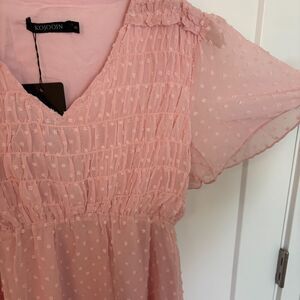MISSKY Women's Summer Maternity Dress, swiss polka dot, v-neck short sleeve & midi. Perfect for a baby shower!