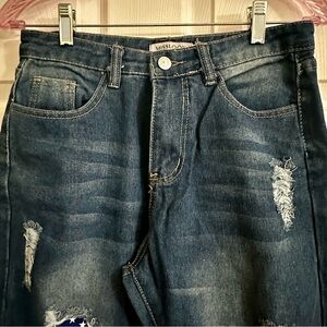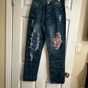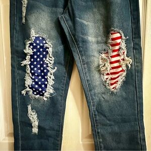 MISSLOOK Blue Denim American Flag Distressed Jeans
