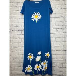 MISSLOOK Blue Handpainted Daisy Short Sleeve Maxi Summer Dress Never Worn! SZ LG