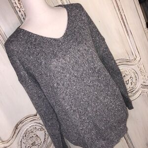 MISSLOOK Gray Spaced Dyed Yarn V Neck Oversized Slouchy Pullover Sweater Size S
