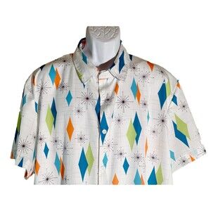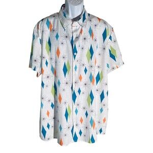 MISSLOOK Men's Short Sleeve Button Down Diamond Shaped White 2XL