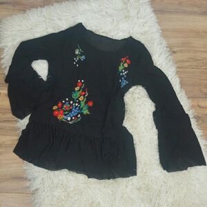 MISS LOVE Women's Embroidered Mesh Top with Ruffled Blouse Bohemia