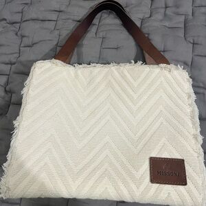 MISSONI Chevron-pattern small cotton-blend tote bag purse luxury vacation