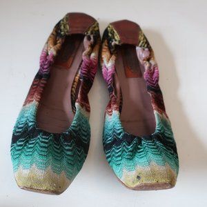 WOMENS MISSONI MULTICOLOR TEXTILE SCRUNCH BALLET FLAT SHOES 39 US/9 *