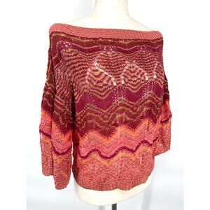 MISSONI Metallic Crochet Chevron Stripe Bell-Sleeve Sweater/Top Size M (est)