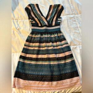 MISSONI Metallic Ribbon Lace Dress in Glitter Pastel Rainbow Size XS