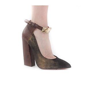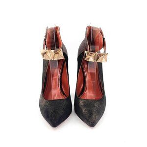 MISSONI Sparkly Gold Stud Ankle Strap Pointed Toe Heels Suede Leather NEW €686