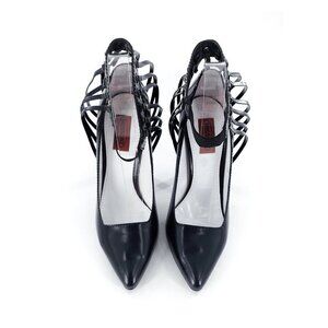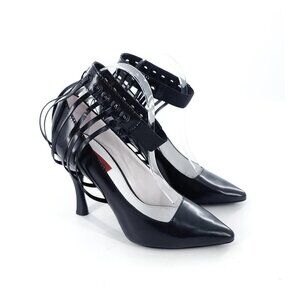 MISSONI Caged Pointed Toe Pumps Heels Ankle Strap Black NEW