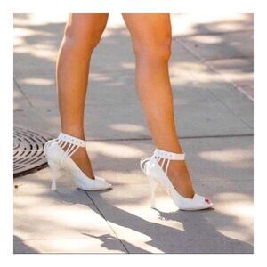MISSONI NWOB Runway White Leather Caged Peep Toe Pumps Heels Ankle Strap NEW