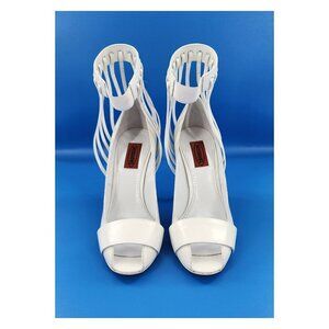 MISSONI Runway NWOB White Leather Caged Peep Toe Pumps Heels Ankle Strap NEW