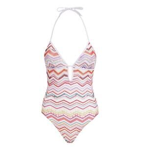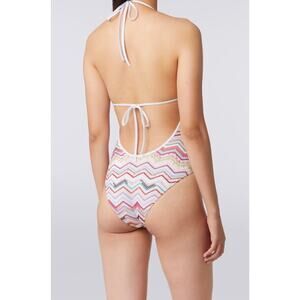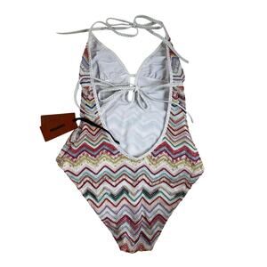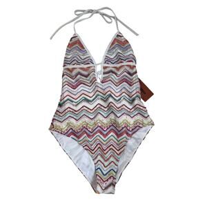 MISSONI SIZE 44 US 8 HALTER PLUNGE ZIGZAG KNIT ONE PIECE SWIMSUIT MULTI NEW