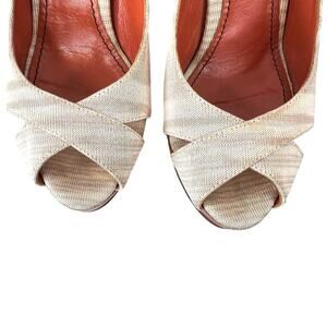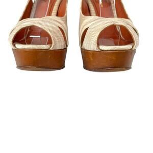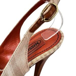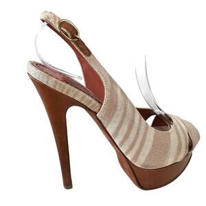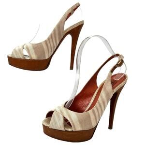 MISSONI Signature Leather Slingback 5" Platform Heel in Beige & Cream Size 7