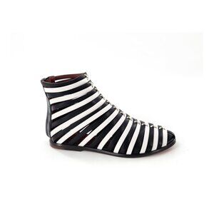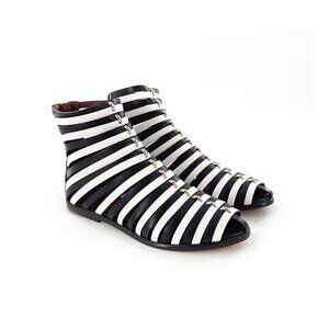 MISSONI Strappy Black White Leather Flat Sandals New Floor Model