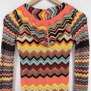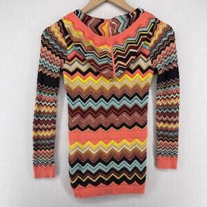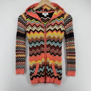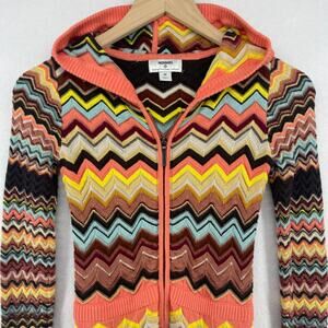 MISSONI Sweater Youth M TARGET Collection Girls Chevron Hooded Cardigan Orange