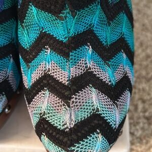 MISSONI Women’s Multicolor Black Turquoise Purple Green Gray, Rust Teal, Brown, Cream Knit Fabric Platform Clogs NEW WITHOUT TAGS!! Size: 38 = 7.5 Made in Italy. Original box no longer available.