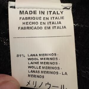 Details: MISSONI black cardigan features alternating vertical stripes of wool and metallic lurex lace. Buttons to a fitted waist with a deep-v neckline, dropped shoulders, & boxy 3/4 sleeves. Oversized, sheer lace. Made in Italy.