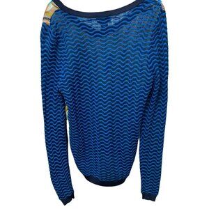 MISSONI for Target Womens Top L/XL Blue Print Blouse with Knit Back